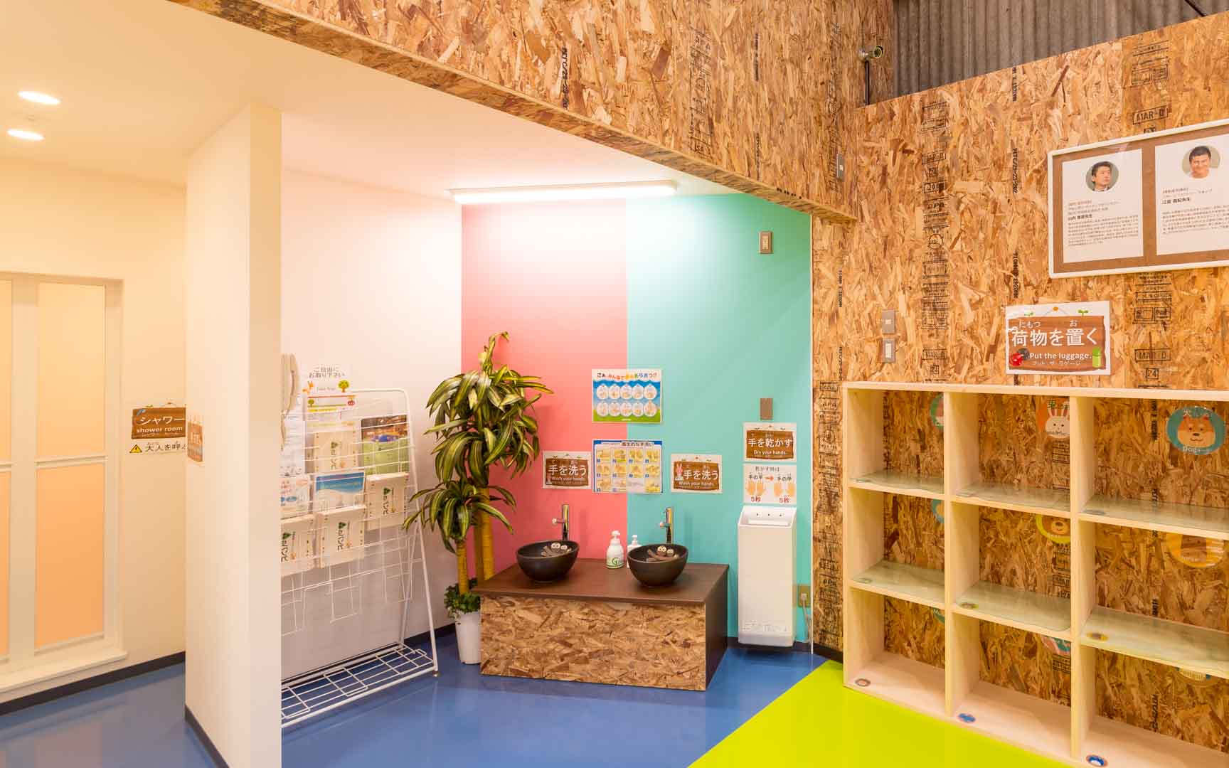 - 子どもたちの安心・安全のため、AEDや防犯カメラを設置しています。また、入り口のセキュリティーは関係者以外立ち入り禁止で、防犯対策にも気を配っています。