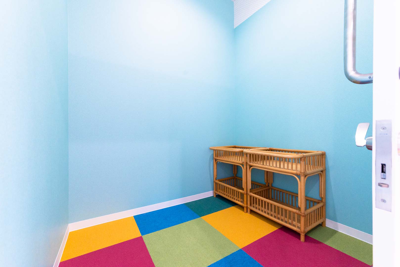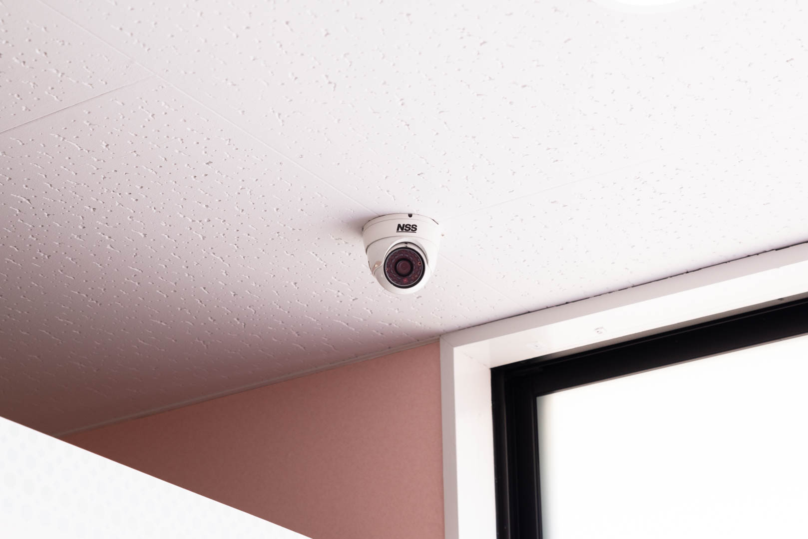 - 子どもたちの安心・安全のため、AEDや防犯カメラを設置しています。また、入り口のセキュリティーは関係者以外立ち入り禁止で、防犯対策にも気を配っています。